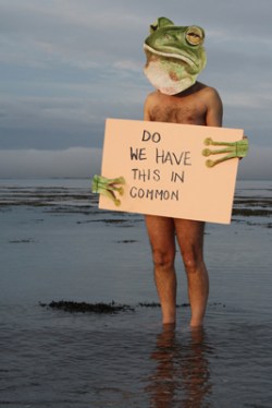 Fiona Woods’ current work Common? was developed as part of her research during the Collection of Minds #1 project[4], facilitated by Rhyzom. Employing a kind of mock D.I.Y, zine aesthetic, she produced a series of posters depicting animal/human hybrid figures and signage posing questions such as ‘Is this common?’
