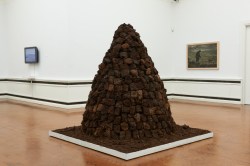Tracking heavy industry to the eastern periphery, Darek Fortas’s ‘Coal Story’ (2011) traces the industrial expansion and development of a workers’ Solidarity movement in Poland. Portraits of miners and photo-documentation of incidental objects found at the mine sites, expressed the realities of heavy industry in human terms. Examining how people interact and operate collectively was explored in Deirdre Power’s ‘Seduction of Place’ (2013), examining co-existence and visibility in public spaces, while ‘The Struggle Against Ourselves’ (2011) by Jesse Jones focuses on representations of the body in film, enacted through choreography underpinned by political conditions. Presented as a stack of printed A4 paper, Mark Curran’s dimly lit installation ‘The Normalisation of Deviance’ sought to expose the myth-making surrounding economic ideologies under Global Capital. The sound-scape (an algorithmic composition derived from Michael Noonan’s speeches) washed over the space in an unexpectedly soothing way. As a monument to capitalist abstraction, Curran’s installation revealed the hegemonic forces of finance in every facet of life.