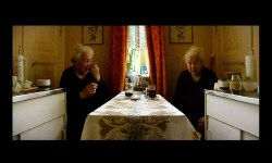 My attention turned to ‘Doris’ (b. 1911), who occupied the compact frame with her chimerical twin. Engaged unnervingly in a dual dialogue, the two differently- dressed ‘sisters’, overlapped, interrupted and mimicked each other’s speech patterns as lifelong companions might do. Following some life reflections, Doris concedes bleakly that she is ‘much too old to still be happy to be alive’. Upon the revelation that ‘now I sit and wait for the departure’, we acknowledge that she is completely alone. Elsewhere, ‘Mr Brozy’ (b. 1915), who is wheelchair bound and in need of full time care in a nursing home, states wearily that ‘God wants it that way…but the time has been so long’.