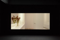 In the adjoining space, The Architects, 2014, opens with a bright blue sky found in 2D renderings of New York – the urban setting for numerous architectural firms portrayed in the film. Originally commissioned for the US Pavilion at the 2014 Venice Architecture Biennale, the film employs long tracking shots to create a seamless journey through different work spaces, as similarities becomes startlingly apparent. Conversely, smaller design studios appear less streamlined and homogenous. Typical office soundscapes comprise throat-clearing, mouse-clicking and the low murmur of inaudible conversations. Portraying the types of labour taking place in these firms, trendy young urbanites are seen constructing cardboard maquettes, photographing 3D models and inserting tiny figures into miniature scenes with tweezers. Omnipresent screens and windows function as portals to the outside world, channelling the ‘very architectures of looking and seeing’, which help to situate the spaces in relation to street level, invariably creating tension between interior and exterior realms.
