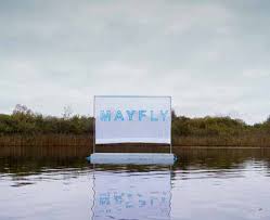 Suddenly, an unfamiliar structure comes into view, gliding slowly across the surface of the lake. Undoubtedly, it’s a raft of some description, whose course is determined by a lightweight sail that flaps lightly in the breeze. Upon adjusting my binoculars to full tilt, it becomes clear that the raft serves as a floating device for some kind of signage. An upright steel frame supports not a sail, but lightweight fabric, emblazoned with hand-stitched, sky-blue letters that curiously form the word ‘Mayfly’. This morning, the water is not populated with the usual recreational activities and there are no vessels in the vicinity. I wonder if I am the only person observing this intriguing and hypnotic scene. Like the lone watchman in the panopticon inspection tower, am I the solitary, all-seeing eye? Suddenly unnerved, I speculate whether this is some sort of apparition, a remnant, a premonition or even a warning. With very little evidence to support tangible explanations, I run through a range of hypotheses: